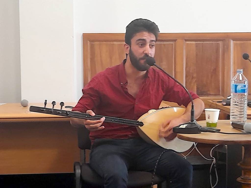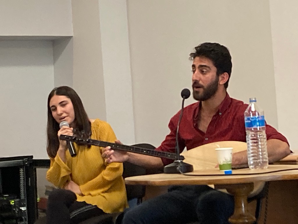 10 à 12 familles représentées et un excellent musicien et chanteur yezidi, Hussein, également compteur et plein d’humour, à qui s’est jointe sa sœur plus jeune en fin de spectacle.